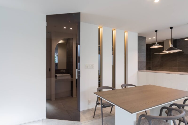 こっそりと壁の中に枠が存在するステルス枠によりドアを壁面化させ、すっきりとした空間を生み出すことができます。