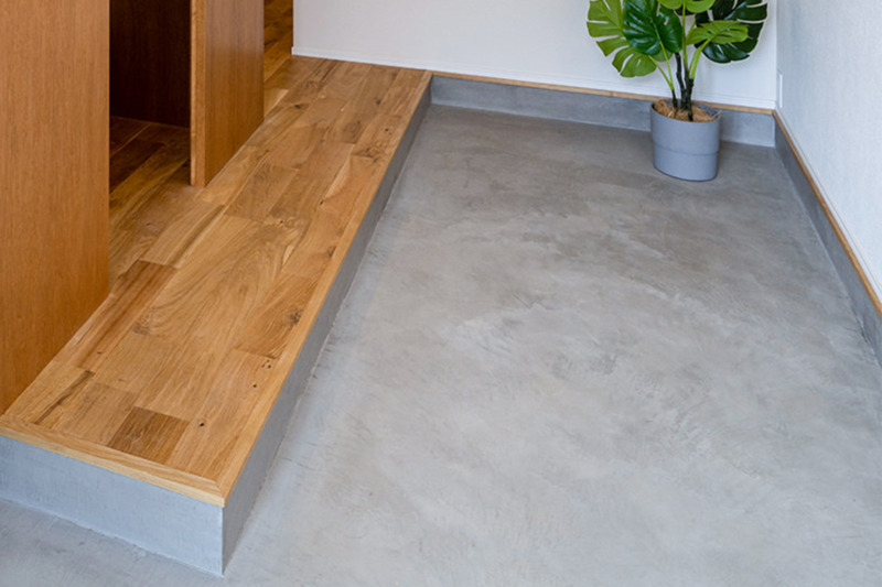 和モダンテイストの家で玄関土間は絶対にモルタルを採用したいから、