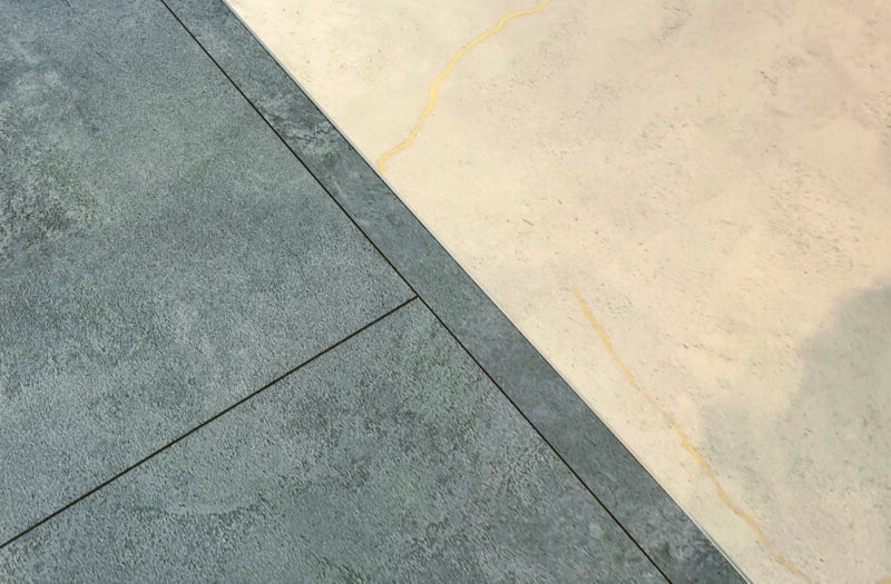 薄いタイル状の床材で、木目・石目柄など種類が豊富。